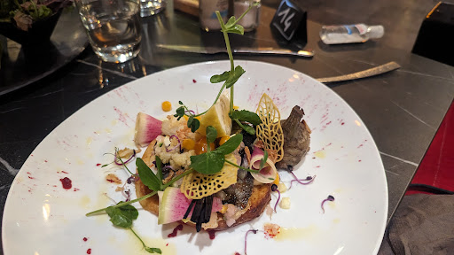 Read moreCet avis concerne uniquement la partie restaurant. Nous arrivons à deux aux alentours de 20h, sans réservation. On nous explique que toutes les tables en terrasses sont pour les gens ayant effectués des réservations, on nous installe donc à l’intérieur, pas de problème jusque là. On prend notre commande assez rapidement même si plusieurs serveurs/serveuses viennent nous demander la même chose. Bref pas de problème. L’apéritif arrive, s’en suit l’entrée dont nous somme ravie elles sont très bonnes. Nous regardons régulièrement la terrasse et ne la voyons jamais plus rempli que 50/60%. Nous attendons nos plats pour la suite, au bout de 40 MINUTES ils finissent par arrivés. Pas un mot d’excuse ou d’explications, le serveurs repart comme si cela était normale. Pour un restaurant qui se veut aussi classe, je trouve cela étonnant. Nous sommes alors sous les coups de 21h la terrasse est toujours remplie à 50/60%. À notre plus grande surprise, 1 groupe de 4 personnes , puis un deuxième arrivent et sont installés en terrasse. On se dis que cela est normal car ils sont 4 et nous ne sommes que 2. Puis arrive un couple, sans réservation, qui a son tour se fait installer en terrasse. On commence à se dire qu’on nous as pris pour des cons, car nous ne sommes pas des clients habitués. Arrive le dessert ou le serveur nous fait la gentillesse de nous proposer de nous installer sur des fauteuils en terrasse pour les consommer. Nous acceptons avec plaisir ! Les fauteuils sont sales et l’endroit est peu éclairé. Dommage nous qui rêvions de cette terrasse depuis plus d’une heure. Les desserts arrivent et la, c’est le drame. Une tarte au citron meringuée tout ce qu’il a de plus banale et tout ce qu’il y a de plus décongelée, et des profiteroles au praliné, sans praline, avec de la glace vanille à la place, et tout ce qu’il y a de plus décongelé aussi. D’ailleurs revoyez la cuisson de votre pâte à choux, on travail dans le métier et elle était bien trop cuite, donc immengeable. Bref une soirée qui a bien commencée mais dont le déroulement et la fin nous...