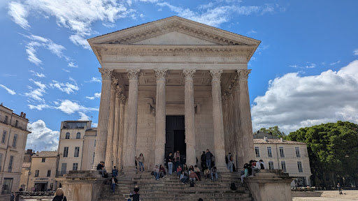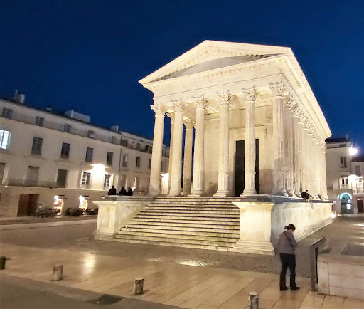 The early First Century BCE Roman temple, popularly known at the Maison Carée in the ancient Roman city of Nîmes (southern France) is notable not only because it is a fine example of Roman architecture, but also because it is the direct inspiration of two notable Neoclassical buildings, one French and the other American. Dwarfing the "Square House," the L'église Sainte-Marie-Madeleine in Paris copies the design and orders nonetheless. Thomas Jefferson was American minister to France when, in 1785 he saw the temple at Nîmes and received a commission to design a new State House for Virginia. The Jefferson building has changed over the years, notably with the addition of chambers to the right and left, but the central building clearly shows the inspiration of the old Roman temple dedicated to the grandsons of Augustus. Jefferson said of the Maison Carée, "We took for our model what is called the Maison quarree of Nismes [an old spelling of the city], one of the most beautiful, if not the most beautiful and precious morsel of architecture left us by antiquity. It was built by Caius and Lucius Caesar, and repaired by Louis XIV., and has the suffrage of all the judges of architecture, who have seen it, as yielding to no one of the beautiful monuments of Greece, Rome, Palmyra, and Balbec, which late travellers have communicated to us. It is very simple, but it is noble beyond expression...." Jefferson believed in the morality of architecture and said of the prospect of his plan, it has "...as its object is to improve the taste of my countrymen, to increase their reputation, to reconcile to them the respect of the world, and procure them its praise." Well, noble imitators aside, take the Maison Carée on its own. The square is a fine place to spend some time. Move around the building with the sun, taking the shade to rest from all the explorations you are making in...