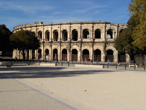 Una delle più belle e meglio conservate arene romane, tuttora utilizzata per le corride ed altri spettacoli. Nimes è una piazza di prima categoria e durante la feria di Pentecoste (fine maggio/giugno) e nella feria de vendanges ( 3 fine settimana di settembre) tutte le star della tauromaquia mondiale calpesta la sabbia magica di questa storica arena con i tori delle migliori ganaderia. Un pubblico attento competente esigente e rispettoso ne fanno uno dei luoghi ideali per assistere a questa magia di arte e coraggio. Tutta la città in festa, musica gente in costume, cavalli rendono unica questa bella città del midi francese piena di monumenti storici e grazie alla lungimiranza dei grandi sindaci, anche di opere moderne dei più grandi architetti mondiali del presente. Una città piena di sorprese e allegria assolutamente...