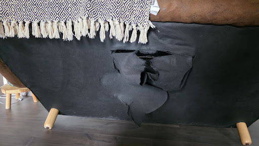 POURQUOI MENTIR ? LE CANAPE NE SOUFFRAIT PAS QUE D'UN DEFAUT ESTHETIQUE EN DESSOUS, IL ETAIT INUTILISABLE CAR RESSORTS CASSES ! LA PHOTO EST JUSTE POUR ILLUSTRER UNE SITUATION NON ASSUMEE !