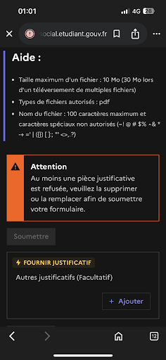 Je demande donc au Crous de Nantes de dĂ©bloquer immĂ©diatement mon dossier ou de le transfĂ©rer sans dĂ©lai au Crous de Tours, afin que mes droits soient respectĂ©s. Câest inadmissible de laisser des Ă©tudiants dans cette situation alors que toutes les conditions sont remplies. Je prĂ©cise que je ne suis absolument pas en tort : jâai respectĂ© les dĂ©marches, transmis tous les justificatifs et fait preuve dâune patience plus que raisonnable.