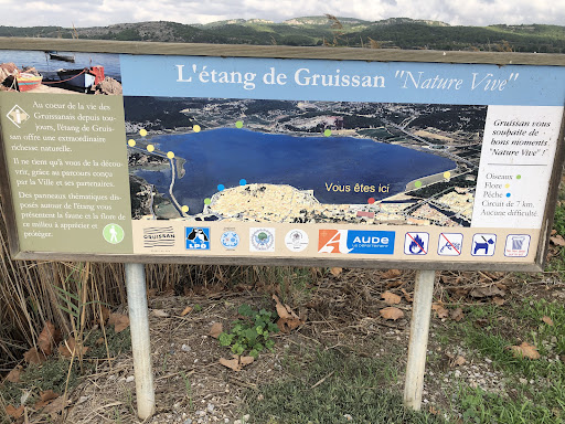 Read moreAvons fait le.tour de l'étang de Gruissant, avons stationné notre véhicule au niveau du rond point (parking gratuit) nous avons entamé le.tour par la droite en faisant face au point d'eau, la première partie est le moins intéressante mais après avoir passé la passerelle le chemin est plus authentique, au milieu de l'étang. On termine la boucle en longeant quelques demeures sur le.trottoir une boite à livre et au niveau du parking une station de gonflage de roues de bicyclette, gratuit. Les 7 kilomètres se font en moins de deux heures, pas possible pour les PMR ou personnes avec des poussettes, terrain plat mais...