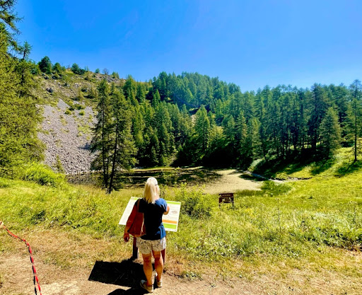 Balade à vélos au départ du centre de Valberg direction de lac de beuil On passe devant le golf puis plus loin arriver à un parking 🅿️ pour attacher nos vélos on continue a pied sur un chemin ombragé + bancs + alpages !! Etc … arriver au ”lac” ! un petit panneau d’information sur les grenouilles et autre batraciens qui viennent dans le lac ou plutôt l’étang !!’dommage la balade et...