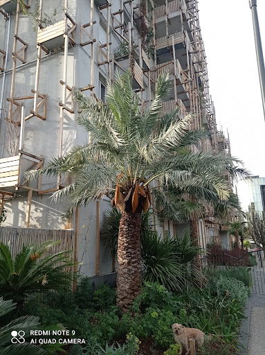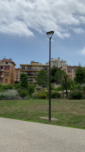 Parc trĂšs beau, mais tous les bancs sont en plein soleil, c est une catastrophe !!!!! Et mĂȘme si les arbres derriĂšre poussent... Ce ne sont hĂ©las pas des cyprĂšs qui feront de l ombre !!!! L idĂ©e de verdure sur les façades des immeubles Ă©tait originale, mais en pleine sĂ©cheresse les plantes n ont aucune allure.... Et les façades sont restĂ©es couleur bĂ©ton, ça paraĂźt bien triste.... Avec Ă cĂŽtĂ© des sortes de cages en canisses, je trouve que c'est du plus mauvais goĂ»t. Au niveau du parc, il y a un lieu de jeux pour enfants, avec un toboggan brĂ»lant !!!! Un jeu de cordes difficiles Ă attraper pour des enfants de 10 ans et moins. Il y a des sortes de grandes tables basses en bois oĂč l on peut organiser un petit anniversaire, sans bancs autour par contre. Le parc avec petite riviĂšre et mini chutes d eau sera donc plus agrĂ©able les jours avec peu de soleil. Le parc est donc beau mais les agencements semblent avoir Ă©tĂ© rĂ©alisĂ©s en dĂ©pit du bon sens, ce qui le rend finalement peu agrĂ©able ......