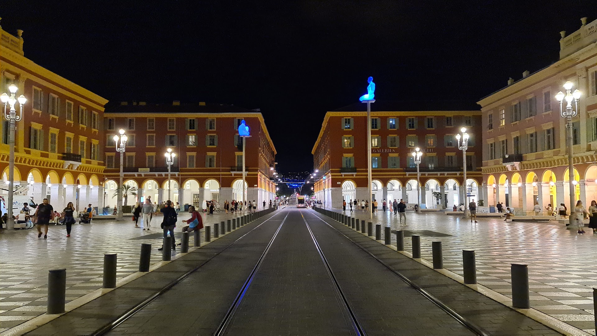 The tram Line 1 passes through Place Massena and all Jean Medecin Boulevard. Considering the heavy people traffic, the drivers are really really careful, so it is pretty safe to walk around. On both sides Place Massena is cornered with Promenade du Paillon park which goes from the Promenade des Anglais (next to the beach) to the Promenade des Arts (next to the Contemporary Arts Museum).
