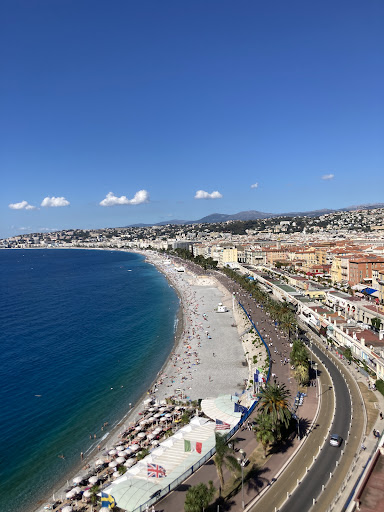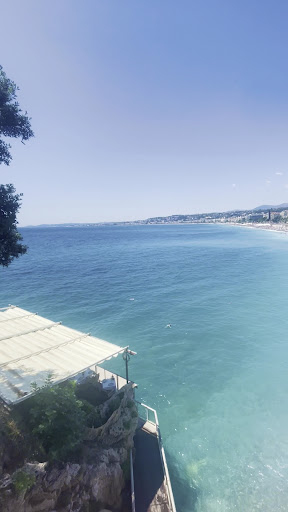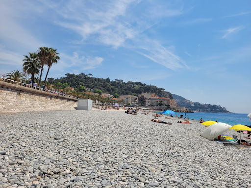 Best part of the Nice beach line apart from the paid parts which are totally worth it if you want to be catered too. Signs say clearly No Dogs Allowed but if you got a mellow dog that stays near you (under an umbrella!), you shouldn't have any problems. After many years of going there, I have yet to see any patrolling at this end of the beach. Only drawback is that there isn't any sand, only stones, so finding a comfortable position to lie down all day isn't easy. Most of the other beach goers are for the most part are mellow though there will be children around you. When the sun sets, it's beautiful and perfect for a...