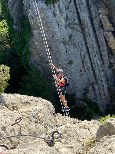 Fabulous day up in Pugets Thenier for this wonderful Via Ferrata route. I first did this back in 2001 and totally fell in love with it, and more recently there has been a great, 460 zip line added at the end. The route is well maintained, and the welcome we got from the Hotel where we had to collect the material for the via ferrata was incredibly warm and helpful (especially as we had messed up our reservation and therefore were not on the list - the kind lady immediately sorted it out and set us up with kit). Then also from Lionel, the super smiley and knowledgable guide who greeted us at the start of the route to explain what we needed to know before setting out, especially focusing on safety which was reassuring. The first part of the climb is fairly challenging with about an hour vertical climb (in the heat, but there was breeze a bit higher up!), the scenery just stunning, with these amazing rocks climbing into the sky which we had to climb up and around, and navigate monkey bridges between. A fab day out - thank you Lionel, and we...