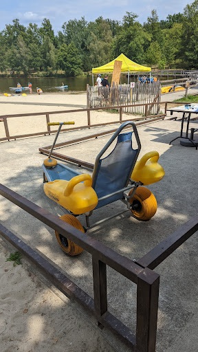Read moreSmall beach with free sups, canoes, playpen. There's a walk around the lake complete with boat crossing. Le Rock Branlant is about 500m from here as well. Parking in the shade if you're lucky.