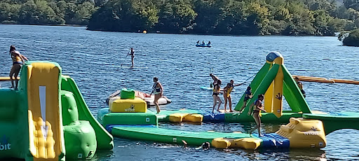 Read moreL'endroit , où il y a les activités, n est pas accessible à la baignade ce qui n est pas vraiment pratique lorsqu on attend les enfants qui jouent sur les structures gonflables. Le temps en plein soleil sans pouvoir se baigner est long!! Voir insoutenable, pas de douche . Une petite plage est accessible 600 metres plus loin avec une navette gratuite disponible. L 'eau n' y est même pas rafraîchissante et très vaseuse, ne donne pas vraiment envie de s y baigner. Les 2 animateurs aux structures gonflables, sous leur parasol, semblent peu motivés à travailler , ils n ont même pas daigné se lever pour nous donner les gilets et equipements , sans doute à cause de la chaleur. Possibilité de manger sur place et de louer des vélos...