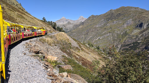 The whole 55 minute trip provides stunning views of the Pyrenees as the railway clings to the mountainside. Originally built to take workers to a dam, that's where your destination is. You have 1 hour 20 minutes to spend here, and you can climb the steep path to visit the Lac d'Artouste and admire the views from there.