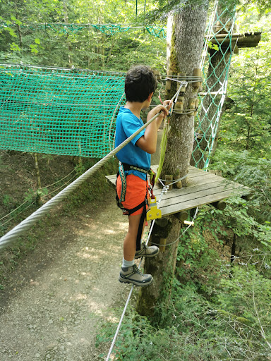 Super parc d'accrobranche.... Le patron est au top ... sourrire assuré. C'est une personne à l'écoute, très pédagogue. Il nous a permis aussi de découvrir la faune et la flore du parc . Nous avons passe un super moment avec nos garçons de 7ans et demi et 10 ans ...... Merci aussi a la jeune fille qui etait là et qui a permis à mon petit loup à surmonter ses difficultés tout en restant en sécurité...... à chaque fois que l' on vient pour les vacances on passe chez vous et les enfants grandissants on profite un peu plus des parcours ......La différence avec les parcours que l'on connait chez nous dans les bouches du Rhône et que l'on apprecie , l'accueil , l'investissement de toute l'équipe....... Si vous etes dans le coin allez y vous y passerez forcement un bon moment......Encore merci a tous et à l' année...