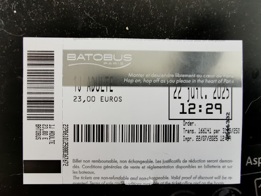 Good option if you use it over 2 days for 1 ticket Decided on our last day in Paris on Tuesday, 22nd July 2025, to travel to the Eiffel Tower and take a River Cruise on the Batobus boat. Having checked out the river cruise options, we decided to select the Hop on/Hop Off Batobus as we wanted to use the service to visit a couple of locations on the route, but in truth, you could do this more easily and cost-effectively via the Metro. As it was, we went to the Batobus ticket booth and purchased 2 tickets at 23 Euro each. There was no map provided or available, as the member of staff said to take a photo of the map poster, and I had to pay using a card as the cashier had no change available. Once we started queuing, we were informed it would be a 45-minute wait as a boat had broken down. This is a negative aspect of this type of service, as in truth, there is no motivation to provide a regular service, as once you purchase your ticket, you have to accept what is on offer, unlike a normal Seine cruise, where you would select the one leaving sooner. As it was, once the boat arrived, most passengers exited at this stop. Once on the boat, as listed, there is no commentary (this is like the Uber Boats on the Thames tbh, but unlike them, there are no toilets or refreshments on board). We exited at the Notre Dame stop and then re-joined at the same stop (Most passengers seem to enter and exit at either the Eiffel Tower or Notre Dame). Option to sit or stand inside or stand in an open area at the boat's rear end. The ticket lasts 24 hours, so I suggest you purchase it at say 1700 so you can enjoy a night-time cruise and see the city at night, and then you will have all day till 1700 the following day to do the same for all or part of the cruise during...