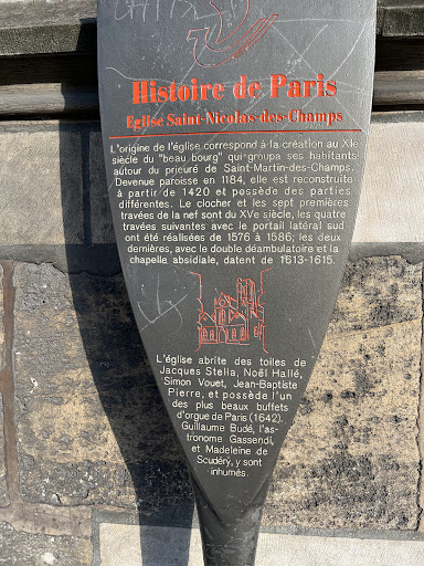 La chiesa di Saint-Nicolas-des-Champs è un edificio di culto cattolico di Parigi, situato nel III arrondissement. L'edificio, in stile tardo gotico, risale ai secoli XII, XV e XVII; è monumento storico di Francia. L'organo a canne principale della chiesa, attualmente non funzionante, è uno dei più antichi di Parigi tuttora esistenti e conservati pressoché integri nella loro conformazione originaria. Si trova sulla cantoria in controfacciata, e fu realizzato nel 1772-1776 da Francois-Henri Clicquot, il quale reimpiegò la cassa dello strumento precedente, edificato da Paul Maillard nel 1608-1611 e ricostruito Crespin Carlier nel 1632. Successivamente subì piccole modifiche fino al restauro di Victor Gonzalez del 1929-1930, il quale aggiunse una sezione espressiva al terzo manuale, successivamente scollegata. Con i suoi 56 registri su cinque manuali e pedale, è il più grande organo francese classico della città. Dal 1927 è monumento storico. A pavimento nell'undicesima campata della navata laterale interna di sinistra, vi è uno strumento di minori dimensioni, costruito da John Abbey nel 1843 e ampliato da Pierre Chéron 1950-1952. A trasmissione elettrica, dispone di 23 registri su due...