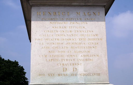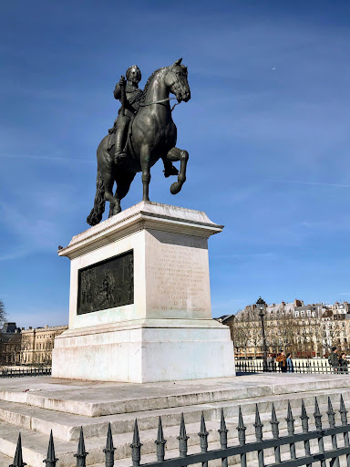 The bronze statue you see today was built in 1818 by Francois-Frederic Lemot to replace an original statue built in 1614 by order of widowed Queen Marie de' Medici. The original King Henry IV statue was destroyed in 1792 during the French Revolution.