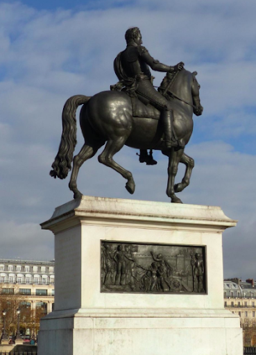 The equestrian statue of Henry IV is a bronze equestrian statue completed by Pietro Tacca. The statue, which now stands on the bridge Pont Neuf, was indirectly commissioned by Marie de Médicis for her husband, King Henry IV of France.The original commissioned artist, Giambologna, had died before its completion, making Pietro Tacca take over the commission.The statue itself was erected in 1614.It was then torn down in 1792 during the French Revolution, but was later rebuilt by 1818.