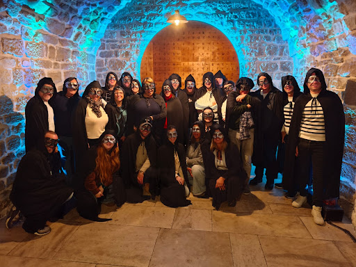 The escape room per se is quite fun - we competed in teams and everyone got hyper. I've been to many escape rooms and this one for sure stands out with its design of the puzzles, the set-up and the interactive challenges, as well as the costumes!! Definitely what you'd call an immersive experience. We had no difficulty speaking English with the two masters (hosts of the game) and completely appreciate that.