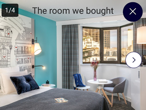 Great value for money, love the location as it was not central central like just outside the Louvre, thanks to this not loud and not full of tourists, but still very well located to explore the city. We’ve had all we needed just outside the door, nice restaurants and bars, where you don’t have to pay hundreds of Euro for some petit portion. Good drinks and atmosphere also among people, I was not sure what to expect as it was my first time in Paris and for some reason I never wanted to visit, but also thanks to your hotel I fall in love with Paris. Also all sort of shops including supermarkets, train and metro station. It took us less than an hour to get to the hotel with metro B from CDG airport. All main attractions are walking distance - we walk a lot - but you can also take a taxi or metro or bus. Ok I must admit that when booking the hotel I saw the building and thought to myself - who on earth gave them permitían to build something like that in this historic area… but than I saw the Montparnasse Tower near by… and decided not to judge the book by its cover. Inside everything is modern and renovated, everything you may need is there. The rooms are nice and good size - not like London’s if y’all know what I mean, clean, stuff was very friendly. Our room was modernized and had a small balcony from which we’ve seen the Eiffel Tower! Thank you very much for that, I appreciate it. The bed was confiable, could be a little bigger but I’m just being fussy as we are both tall and well built and in most of the hotels we would wish for bigger bed. Also a table and two chairs and that was helpful. Love that the fridge was really working well, not like in most of the hotels where they just give you a fridge working 30% cool… also they give you water daily, tee and coffee. Very nice, big and new TV - I know it’s not about watching it when in Paris… but I would like to see more international channels, there were 3 English (including some BBC news but some dedicated to a region or so) one German, one Italian and I think that was it… but the tv is new so you can connect it to you iPad or other divide and share the screen and watch something on your favorite online platform. Bathroom was ok, I know they can’t be huge, the shower was ok, no problems at all but the ‘toilet area’ was developed for a really tiny people, however It was clean and that’s a plus as well and with all you may need. Our room was overlooking the ‘garden’ area, garden unfortunately was not kept in shape but the chickens were a star from me, love the idea of city farming. All this really made our stay superb, we didn’t have to worry about anything, everything worked really well and the balcony was a cherry on the top of the cake for...