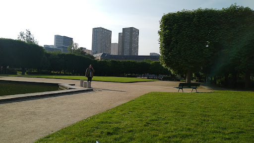 Read moreHalte verte au pied des tours, pelouses et petites allées typiques des parcs à la française. Pas d'extravagance mais de belles plantes et fleurs disséminées sur toute sa surface ainsi qu'un jardin partagé, peu de relief mais une vue dégagée sur le quartier, et un parc qui respire surtout au printemps et l'été une douce quiétude, de celle qui vous fait prendre votre temps sur ses bancs, pour venir y grignoter, bronzer sur l'herbe, papoter ou faire sa sieste. On y trouve un manège pour enfants, un petit théâtre de Guignol, ainsi qu'un café à l'ombre de ses parasols et ses arbres tout ce qu'il y a de sympathique non loin de son bassin central d'où jaillissent quelques jets d'eau. Petite pause douce avant de continuer à vadrouiller...