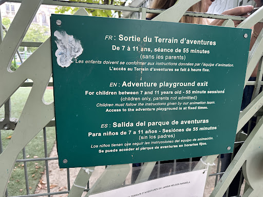 This is an amazing facility in the heart of Paris. Many of the reviews here are unfair. It is a free facility run on 55 minute sessions where children must be 7 years old and capable of staying for the full 55 minutes without their parents. The staff are trained and arrange games to ensure children are entertained and safe. Every single time I go, there are parents telling their children to "say your seven", unbelievable as it may seem people attempting to put 4/5 year olds in, parents on holiday with non french speaking children who try to force their own children to go in even as the children are begging not to go in alone. You must respect the rules, know your child's capabilities and be fair to the staff..they do not need crying 5/6year olds or shy older children who don't speak french staying for 55 mins. The staff are great but I can only imagine how frustrating it is to see parents break the rules which are very clearly written both in french and English. They are flexible if your child is overly confident and happy to enter but parents must be fair, height also is an issue as smaller children may not be able to climb certaain structures. They don't take parents numbers so you need to be 100%confident your child can cope before putting them in. Talk to the staff if you have a doubt they will let you take the kid out if they are miserable but you need to communicate before your child enters. Staff will speak some English and they show compassion to the distressed child but they do not tolerate pushy/rude parents. My daughter adores this playground and has recently started joining in the organised games of tag rugby (or something similar) I can have 50 mins to grab a coffee and read next to the park. Be aware of times and do not arrive late at the pick up zone which is not the same area as the drop off point.The mean lady people wrote about in reviews is actually lovely and perhaps it's a language barrier or maybe it's parents thinking rules don't apply to them and their children but writing nasty comments and putting photos up of said staff members is totally unfair. This is honestly a super option for children after you have dragged them through the Louvre but be sure of your child or take them to tuilleries park where they can play unrestricted or pay for the trampoline area, also Luxembourg gardens has a good playground where you can pay and stay with your children who need your presence to feel secure. For reference I live in Paris and frequently use the park at Chatelet. Usually there will be an English speaking child or two. Bird poop can be an issue around the area but they keep the play park clean. I hope that this gives an insight into some of the less fair reviews...