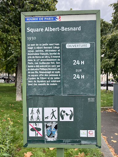 Read moreJ'ai adoré le Square Albert Besnard dans le 17e arrondissement de Paris ! Un havre de paix en plein cœur de la ville, avec des pelouses accueillantes, des massifs de rosiers magnifiques et un buste du peintre Albert Besnard. L'atmosphère est calme et détendue, idéale pour une promenade en famille ou un moment de solitude. Je recommande vivement cette visite pour ceux qui cherchent un peu de verdure et de sérénité...