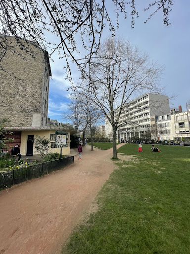 Read moreParc assez agréable pour les enfants, aire de jeux avec escalade et tobbogans, bac à sable idéal pour les beaux jours. Parc situé dans un quartier fréquenté mais calme. Plus au fond, on trouve un espace avec banc et arbre ainsi que des fleurs, idéal pour se poser. Près de l'entrée du parc, il y a un mini terrain de basket, tables de ping pong, mais aussi un abri où plusieurs affaires appartenant je suppose à des SDF sont laissées là, (chaises, sacs...) des toilettes publiques sont situées...