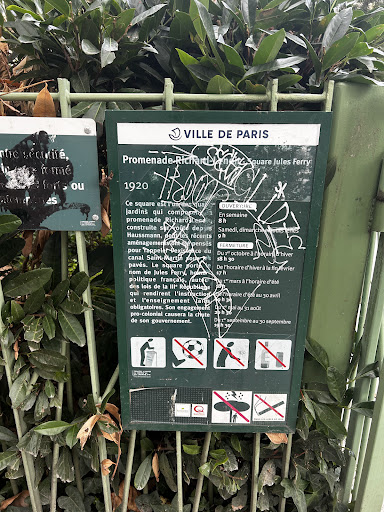 A rather sombre experience when I stopped at this Square Jules Ferry around Saint Ambroise area and Canal Saint Martin. There is a Memorial site that marks the spot where so many lives were taken on November 13th 2015! I was here in 2024 and still feel emotionally touched. This is actually a long public park with playgrounds for children and surrounded on both sides by beautiful Avenues filled with shops, cafés and restaurants. There's street parking available and public lavatory dotted throughout the park. This is a lovely Park area and despite the tragedy I feel people are slowly getting on with their lives. This park also complete with public toilets and many green benches for people to rest and...