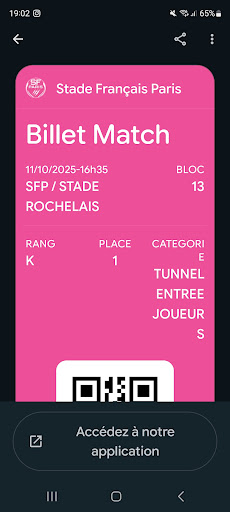 Le jour J, à mon arrivée, quoiqu'il me soit impossible de retrouver la trace de mes billets via mon mobile- places qui pourtant fonctionnaient/etaient visibles depuis mon ordinateur via le site du Stade Français- les guichets de l'accueil ont pu nous retrouver avec nos noms et les numeros de nos places:)