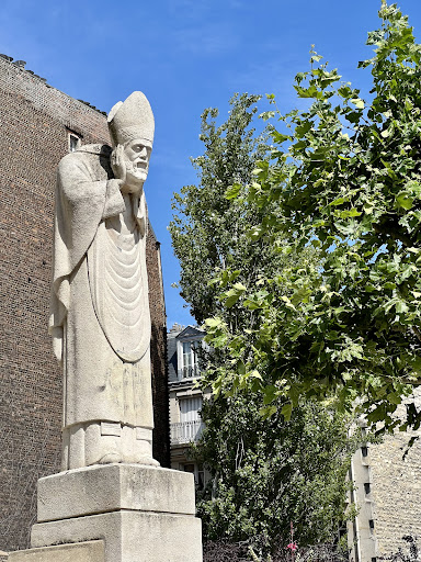 Read moreStatue of Bishop Saint Denis in a small park where is crowded with residents and tourists Saint Denis, the first bishop of Paris and patron saint of France. In the middle of the 3rd century, he was beheaded on the hill of Montmartre and died. This statue depicts the legend that he went down his hill, holding his beheaded head with hands, to the place God designated as...