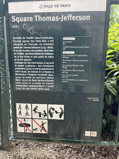 Read moreThis is a beautiful little enclosed park nestled in a quiet little nook of the 16th arrondissement. It pays homage to Thomas Jefferson, Washington and Lafayette. There is a children's playground inside it on one end so it's popular with the young families who live nearby. The grassy lawns offer a relaxing place to read, relax or picnic during the summer months, away from...