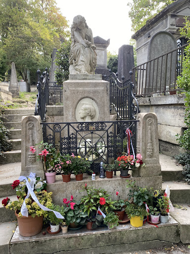 Read moreAls ich vor dem Grab von Frédéric Chopin auf dem Cimetière du Père-Lachaise in Paris stehe, wird mir sofort die besondere Aura dieses Ortes bewusst. Der Grabstein ist kunstvoll gestaltet, umgeben von grünen Bäumen und bunten Blumen, die von seinen Bewunderern hinterlassen wurden. Die Inschrift nennt seinen Namen, und auf einer kleinen Plakette steht, dass seine Überreste hier ruhen – ein Zeichen für den bleibenden Einfluss, den dieser Komponist auf die Musikgeschichte hatte.