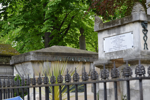 Read moreLas tumbas de Voltaire y Jean de La Fontaine en el cementerio del Père-Lachaise son simbólicas: sus restos fueron trasladados allí en 1817 para dar prestigio al nuevo cementerio y atraer visitantes. Aunque ambos habían fallecido más de un siglo antes, sus nombres eran sinónimo de cultura y grandeza francesa. • Voltaire (1694–1778), filósofo y figura clave de la Ilustración, fue originalmente enterrado en un monasterio. En 1791, sus restos fueron llevados al Panteón de París, pero una tumba simbólica fue erigida en el Père-Lachaise. • Jean de La Fontaine (1621–1695), célebre por sus Fábulas, también fue trasladado simbólicamente al Père-Lachaise desde el cementerio de los Inocentes. Ambas tumbas están una junto a la otra, con monumentos sobrios y elegantes, y se convirtieron en puntos clave para consolidar el prestigio del cementerio como lugar de descanso de grandes figuras de la historia y la...