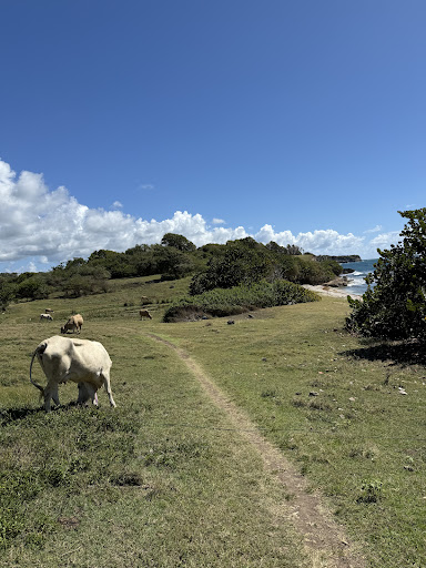 Read moreDepuis le Parking du port de Saint Félix, toute la zone de nature jusqu'à la falaise qui sépare la zone de Dampierre. Je ne me lasse pas de cet endroit qui vous fait changer de décor toutes les cinq minutes, de la plage à la falaise où vous prenez un grand bol d'air, à la mare, à la végétation de rocaille et à la mangrove. Quelques vaches plus où moins attachées, une jolie vue depuis la pointe canot sur l'îlet du Gosier et la Basse Terre, une chienne heureuse de gambader dans ce beau coin de nature. Attention cependant la zone de plage avant la falaise est interdite aux chiens. Possibilité d'accéder par l'arrière sans passer par la plage dans ce cas. Idéal aussi pour un footing (pas tout plat, mais pas de pente très raide) car possible de faire une boucle complète. Et après le sport le réconfort: un verre à la Baie des pélicans 😅