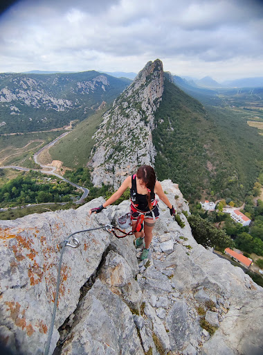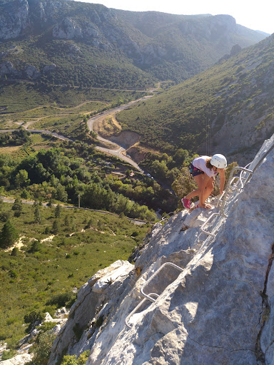 Read moreReseña de la vĂa difĂcil de esta Ferrataâš: Es una Ferrata preciosa, desde mi opiniĂłn, no apta para principiantes puesto que requiere algunos pasos tĂ©cnicos y algĂșn pasito que requiere fuerza de brazos. He visto que estĂĄ catalogada como K3 y una vĂa difĂcil segĂșn la nomenclatura de Francia. DespuĂ©s de hacer varias ferratas "difĂciles" en Francia, creo que estĂĄ si que se acerca mĂĄs a lo que se define como difĂcil. Consejos: Calzado que no resbale, hay tramos que tienes que ir sobre piedra y te darĂĄ mĂĄs seguridad y agarre si llevas zapatillas de trail o de montaña. Si haces la Ferrata en verano y no hace nubes, te vas a abrasar. Es una vĂa que te pega todo el dĂa el sol, en verano o la haces muy temprano o coges un dĂa que tenga nubes ( como nosotros). puentes tibetanos fĂĄciles, sin casi nada de dificultad, bastante estables. El Parking que estĂĄ a los pies de la Ferrata de llena a partir de las 7:30-8:30h. En ese parking hay ĂĄrboles que te dan sombra, quiĂ©n madrugue sombra que pillara.