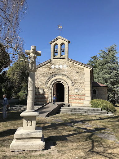 Read moreZur kleinen Kappelle gelangt man durch ein kleines Tor hinter dem sich ein Garten befindet. Die Kapelle liegt nun in der schönen Umgebung eines Gartens vor dem Besucher. Ein paar Schritte vor dem Eingang steht eine Säule die in ein Kreuz übergeht, davor eine Skulptur mit Kapuzenumhang. Wohl ein Mönch, der mich in der Ausfertigung an japanische Darstellungen erinnert. Die Kapelle ist schlicht in Stein gehalten, über dem Eingang ein kleiner Aufbau als Glockenturm. Bogenfenster zieren das Kirchenschiff. In der Eingangstür sind in Quadraten sakrale Bilder eingefasst. Das Innere zeigt eine Holzdecke und sakrale Wandmalerei. Der Altar im Hintergrund in Weiss gehalten. Der achtzigjährige französisch-japanische Maler Foujita hat die sakrale Malerei geschaffen. Auf den ersten Blick wirkte es mir etwas eigen, das Auge täuschte sich, als ich einen hellen, beinah überweltlichen Anblick zu sehen vermeinte. Es sind einwandfrei geschaffene sakrale Motive, die den Betrachter erfreuen. Am Eingang hat es erfreulicherweise eine...