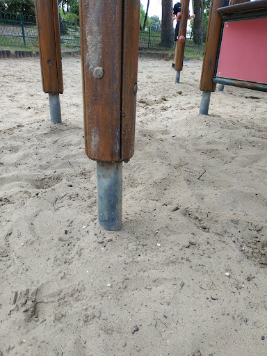 Le jardin d'enfants est a première vue plutôt attractif sauf que... Il ne me semble pas tout a fait aux normes ! En effet il me semble que le niveau du sol (en sable) n'arrive pas au niveau requis des pieds des structures. Il manque une bonne vingtaine de centimètres. Et le sable étant bien tassé les chutes éventuelle ne sont pas très bien amorties. Je parle de chute car un incident c'est produit sous mes yeux : une fillette âgée de 6/7ans a voulu faire le parcours où il faut se suspendre aux anneaux à bout de bras et, n'ayant certainement pas la force requise, à lâché et est tombée sur le sol a plat dos ! Heureusement un médecin sur place a rapidement pu constater qu'il semblait y avoir plus de peur que de mal. La plaque sur le jeu Indique un âge d'utilisation à partir de 5 ans !!! Ce qui me semble...