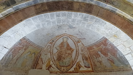 Considérée comme un joyau architectural, on peut y admirer des fresques somptueuses ; la plus ancienne de toutes est celle placée sur le cul du four : Christ en Majesté, d'inspiration byzantine (fin XIIIe.).