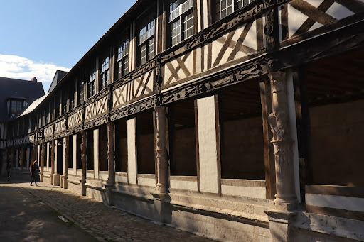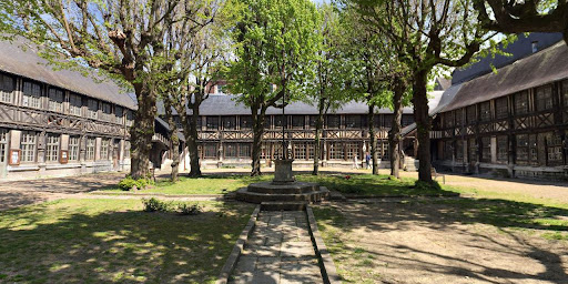 L'histoire de ce lieu exceptionnel remonte à la Grande Peste noire de 1348, qui tua les trois-quarts des habitants du quartier. C'est ainsi que l'on dû ouvrir un nouveau cimetière : le grand aître saint Maclou. Trois des galeries qui entourent le cimetière ont été construites entre 1526 et 1533 pour servir d'ossuaire. Leur décor est macabre : crânes, ossements, outils de fossoyeur, objets de culte dans les rites mortuaires.
