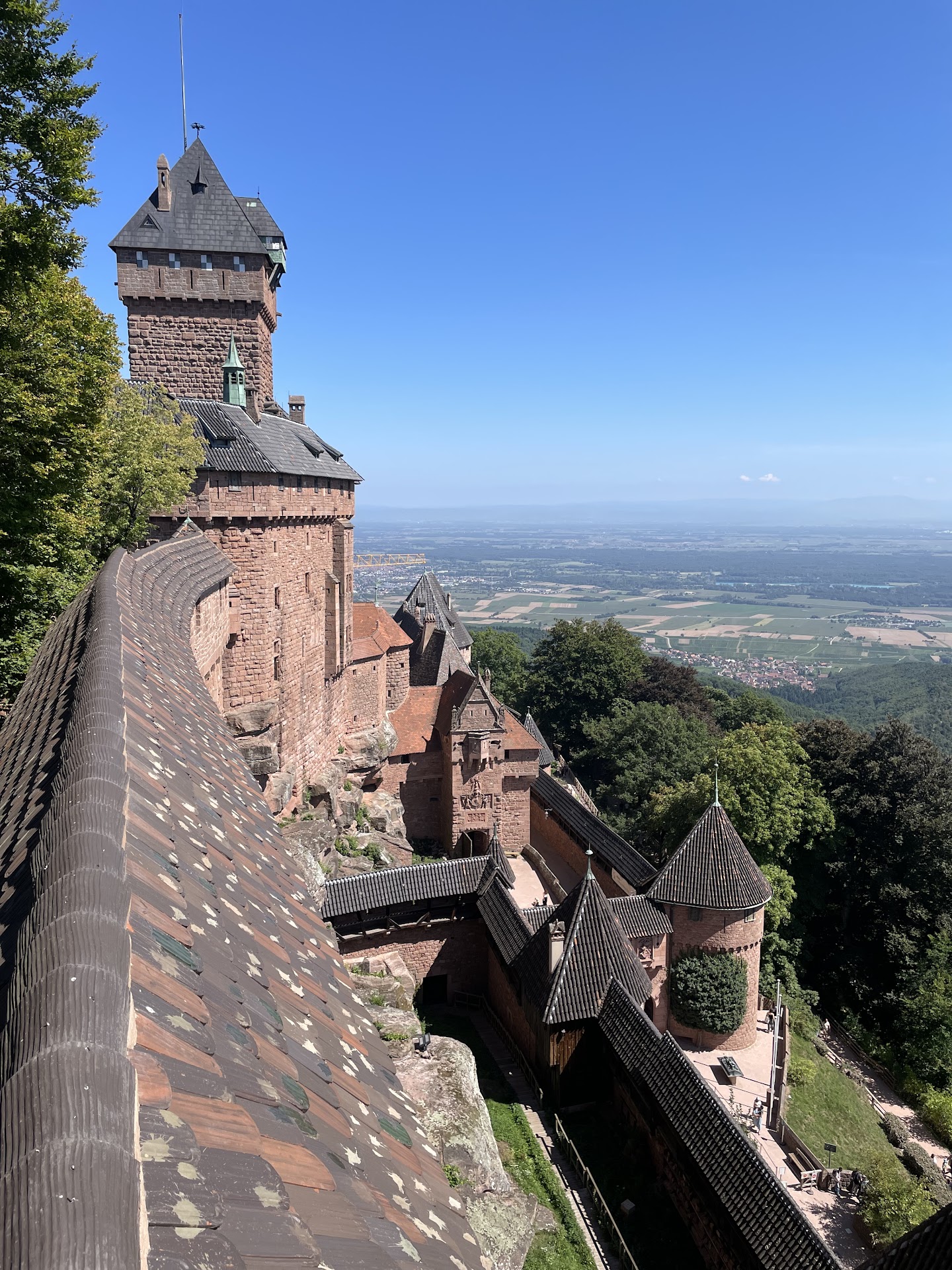Big castle and very well maintained. You can reach it via Bus 500 from train station (2,5 eur, cash) and this allows you to pay only 6 eur instead of 12 eur for the castle. You can reach the castle by some hiking trails as well. There is a café and a restaurant by the entrance. The castle has a good collection of medieval itens. You can do a self guided tour using their free paper guide (several languages). It is a one-way tour going over the inside and outside of the castle. Bathroom only before starting the tour. The view is amazing! It can get pretty crowded. Haut-Kœnigsbourg Castle is a medieval fortress located in the Vosges mountains of Alsace, France. Originally built in the 12th century by the Hohenstaufen dynasty, the castle was strategically positioned to control key trade routes across the region. Over the centuries, it changed hands several times and was besieged and destroyed during the Thirty Years' War in 1633. The ruins remained abandoned until 1899, when German Emperor Wilhelm II ordered its reconstruction as a symbol of imperial power. The restoration was carried out in a romanticized medieval style, preserving much of its original layout. Today, it stands as a major historical monument and offers a vivid glimpse into feudal life and military architecture.