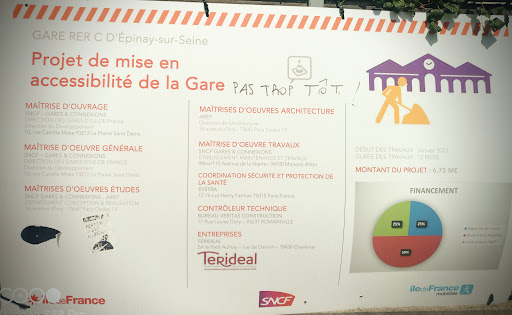 Gare allant vers plusieurs destination et correspondance très pratique pour gagné du temps, au alentours vous avez pas mal de bus vers plusieurs destination, et je trouve que cette gare a un atouts pour ces transports je recommande selon ou vous allez. il y a une salle ou vous pouvez vous poser pour travailler sur ordinateur, dés ascenseur pour les RER C et tram T11 l'autre tram est a 250 m...,. La SNCF pourrait aménagement une air de repos pour si reposer et petit point de commerce genre alimentation entre les rails idem a PIERREFITE-STAINS ou il y a un petit terrain accessible entre les correspondance, et un endroit de détente serait l'idéal avec des bancs et genre hamac comme a Aubervilliers a cote du front populaire et arbres et pourquoi pas des jet d'eau pour si rafraichir il serait bon de l'aménager il est dommage de laisser un petit inexploitée et endroit qui serai profitable a tous ceux ou celle voulant faire une pose merci entre...