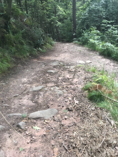 Une bonne montée dans les pins. On grimpe mais c'est assez régulier dans les senteurs de résine et la seule difficulté est les 100 derniers mètres qui montent plus durement dans les racines et rochers. Ensuite on découvre trois rochers énormes sur lequel on peut grimper avec les marchés creusées dans le grès rouge et même si cela peut paraître impressionnant les rembardes sont bien solides et stables. La vue sur la ville de Saint Dié en bas et les Vosges...