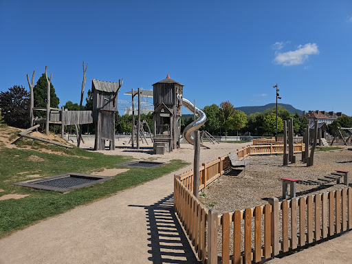 Des jeux divers et nombreux, pour tous les goûts des enfants MAIS... Le parc n'est pas fermé et il faut surveiller les enfants qui courent partout, c'est proche de la route, même si les voitures passent à 30, sans oublier le fait qu'en été il n'y a rien pour recharger une gourde d'eau et les toilettes sont fermées ! En plein soleil... Un peu déçue parce que j'avais le souvenir que...