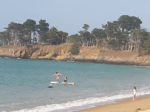 Read moreQue vous arriviez sur cette plage côté école de voile/camping ou côté maison Bouygues au milieu ou côté Guimorais vue de la belle allée d arbres ,la beauté de cette plage en forme de coquille vous offre une vue à couper le souffle. Si vous choisissez la marée basse elle vous offre des rochers pleins de crevettes et crabes et même une montée sportive du côté gauche vers les Rochers Sculptés (mal chaussés s abstenir car le retour est casse-gueule ! ) Toujours du côté école de voile, au milieu des bateaux, le ramassage (modéré) des coques est très amusant ! Occupation enfants garantie. Pour leur sécurité choisissez ce côté car l accès du milieu vous met plein vent face mer avec parfois des trous d eau inattendus à marée haute...et le côté guimaurais est marécageux ! N oubliez pas de regarder les maisons, elles font partie intégrante du spectacle offert par...