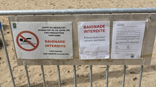 This is just is terrible news, the beach is closed because it is a danger to health. We picked our holiday location to be within walking distance of this beach. Only to find that it is closed, for swimming purposes, due to sanitary reasons. See photo attached: BAIGNADE INTERDITE Précautions pour raisons sanitaires Du Samedi 7 septembre 2024 à 18h jusqu'au lundi 9 septembre à 12h