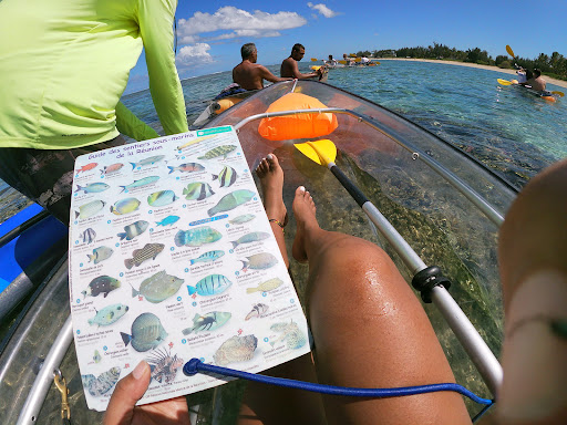 Read moreExpérience à faire absolument! Idéalement située sur la plage du Trou d'eau (populaire et familiale). Les prix sont abordables et bon rapport qualité-prix. Le patron est un amour et ses employés sont des anges de gentillesse l'accompagnant. Ils se plieront en 4 pour vous satisfaire. Les règles sont données dès le départ, et si vous êtes débutant(e), les garçons vous ré-expliquent tout en douceur et avec pédagogie. Des poches transparentes pour portables sont prêtées ainsi que des montres (afin de respecter le temps de location). Concernant les activités, vous pouvez faire, soit du kayak transparent soit du paddle. Pour le kayak, vous avez des gilets de sauvetage à disposition pour ceux ne savant pas nager et pour les plus petits. L'activité est vraiment chouette, vous naviguez à travers le bassin de corail en toute quiétude. Une petite fiche explicative des différents poissons que vous pouvez croiser est fournie. Activité idéale pour amuser les plus petits ou pour détendre les parents. Ou encore pour une sortie fun entre potes ou avec l'élu(e) de son coeur. Pour le paddle, activité hyper chouette, celle que j'ai préféré notamment pour mon indépendance et la maniabilité du transport. En bref, un super moment de détente afin d'observer la faune marine en toute tranquillité, naviguant au grès des flots de ce magnifique...