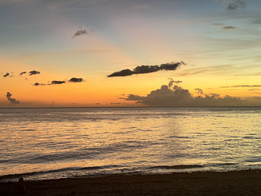 High quality beach on the west end of the island. On island trips I always check out the western ends at sunset, and this beach did not disappoint. The sunw as behind the clouds most of the time but that made the tinting of the sky even more interesting