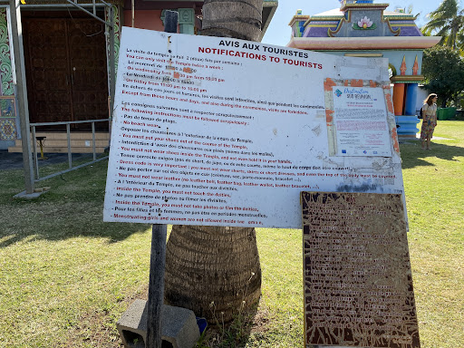 Read moreMagnifique Temple Tamoul, Le plus beau de l’ile, voir les photos. Tout près du centre commercial JUMBO. Pour y accéder avant le pont au rond point monter la rue inverse à la plage et c’est un petit accès à gauche derrière les grands immeubles, 100 mètres environ. Il est près de l’autre temple tamoul qui est fermé de couleir jaune. Attention l’intérieur se visite uniquement 2 jours par semaine voir les instructions sur une des photos. L’extérieur on peut entrer dans le parc mais il faut se déchausser. Si prière veuillez respecter...