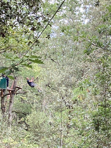Really welcoming and fun. We spent 4 hours here and had a great time! It’s such a lovely shady forest but still worth coming at 9:30am before it gets very warm. We did the red and blue, we all did black route number 2 - even a 10 year old - this includes 170m and again 180m zip lines. Thrilling! All the staff without exception were friendly, calm and knowledgeable. At lunch time there are paninis, pizzas and chips available. The mechanism was new to us, with a magnet clic clac system. It was good and felt robust. Great views from the top. Highly...
