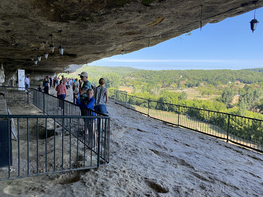 Second attempt at visiting (previous day the road closed was closed due to The Tour De France) as with most out of city France, the parking was free and ample, with the added benefit of being shaded by the trees, another glorious day with temperatures in the 30s. Access is via a ramp to the shop with a small but steady stream of people. There is a guided tour but this was in French which I am ashamed to say I do not have a full grasp of yet. Along the 1 KM shelf there are various display boards (the English version is on the rear) explaining what you were seeing and where you were. The surface was rough and uneven (created thousands of years ago) and unsuitable for wheelchair users although there were some people on crutches that managed the sections without stairs. The whole attraction does leave you in awe of what our ancestors managed to do here and is well worth a visit, but a word of warning, look out for the tiny Caterpillars in July, they are everywhere, hanging from their treads and something akin to walking face first into a spiders web.........but with the added splat of caterpillar when you wipe them from you...