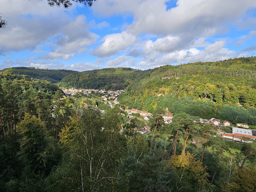 Après avoir pris le sentier qui démarre de la ville (suivre la signalétique Château ),le plaisir des yeux est au rendez-vous pour admirer le site du Château ainsi que des panoramas... Il y a la possibilité également de venir par la route et il y a un parking près du site. L'endroit est bien entretenu ! Histoire du site : L'abbaye de Marmoutier, qui possédait le village, le fit coiffer d'une forteresse vers 930. Pierre de Falkenstein s'empara du château au XIIème siècle et prit le titre de sire de Lutzelbourg. Par la suite, plusieurs co-seigneurs y régnèrent. Mais au 16° siècle, il servit de repaire à des seigneurs brigands et à leur chef Franz Sikingen. Le landgrave de Hesse et les électeurs palatins de Trêves conjuguèrent leurs efforts pour ruiner définitivement le château en 1523. Le château a été restauré en 1900 par le propriétaire des lieux, un médecin strasbourgeois qui fit redresser quelques murs et édifier une maison néo-romane à son usage, l'édifice appartient depuis 1978 à la commune de Lutzelbourg. Le château est ouvert aux publics toute l'année et présente trois donjons qui étaient enfermés chacun dans une enceinte particulière, ce qui prouve au combien que les co-seigneurs se méfiaient les...