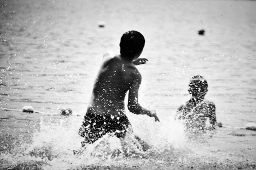 En saison haute, évidemment c'est une plage bondée ! Pour se garer pas évident donc. L'eau est vaseuse et très vite profonde, la limite baignade n'est pas très bien définie du coup des canoës s'approchent des baigneurs. L'eau est froide malgré la chaleur de ce jour. Habitués aux baignades en lac, mes deux ados n'ont pas voulu y rester, notamment car l'espace gonflables sur l'eau est loin de la plage. Snack non testé, je ne peux rien en dire. A revoir peut-être en saison basse ou moyenne pour une jolie ballade et un tour de Pédalo...